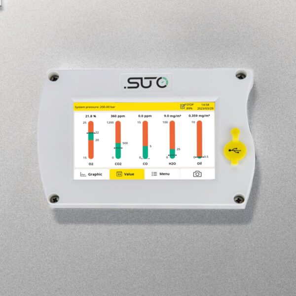 - SUTO S605 – portabel analysator för andningsluft: lämplig för mobila kontroller, service och revisioner där du behöver spårbara PDF‑rapporter mot EN 12021 direkt på plats.