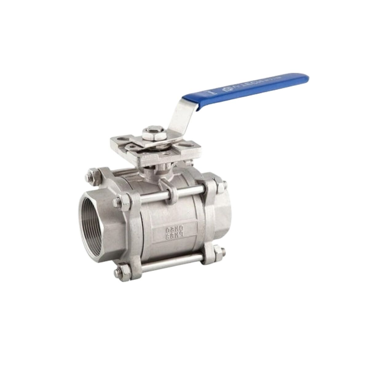 Kuleventil av syrefast stål. Låsbar håndspak i åpen og lukket stilling. Monteringsflens i henhold til ISO5211 for direkte montering av aktuatorer. Tetning i PTFE. Gjengetilkobling G1/2″-4″. Maksimalt trykk 63 bar.