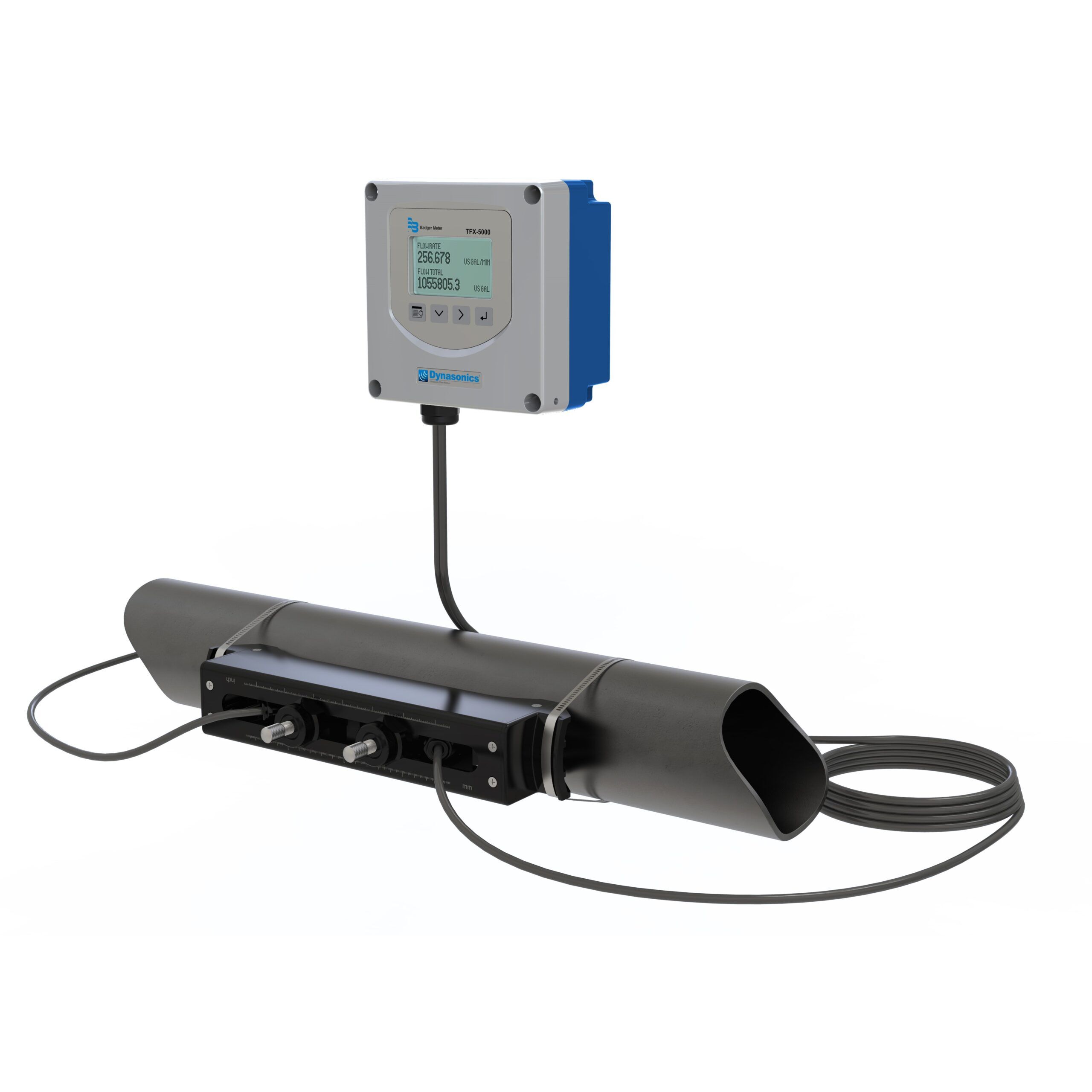 Dynasonics TFX-5000 flödesmätare för användning i Fastighetsautomation, Värme/Ventilation/Luftkonditionering (HVAC), behandling och distribution av vatten & avloppsvatten. Designad för utanpåliggande användning utan kontakt med vattnet genom ultraljudsteknik. Den nya ultraljudsmätaren är en kostnadseffektiv lösning för att mäta vattenflöde bi-direktionellt i en mängd olika applikationer. Typiska applikationsexempel är vattenledningsnät i kommuner, jordbruksbevattning och industriella mätpunkter av både slutna kylsystem och för vattendistribution till en mängd olika processpunkter. Som utanpåliggande flödesmätare är TFX-5000 är perfekt för användare som vill uppnå en hög nivå av användarvänlighet, flexibilitet, ekonomi och prestanda. Mätaren monteras utanpå röret och kan användas för rörstorlekar från DN12 upp till DN1200 utan tryckfall, utan kontakt vattnet och inga rörliga delar att underhålla. TFX-5000 är snabb och enkel att installera utan att kapa rör som stör verksamheten. Den kan eftermonteras i befintliga anläggningar under full drift med mycket kort installationstid och låga materialkostnader.