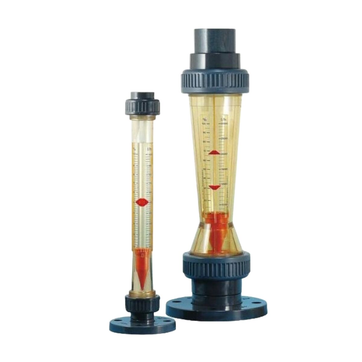 Svävkroppsmätare KSM. Levereras med en skala i liter eller procentskala, O-ringar, två gränslägesindikeringar och montageskena för eventuella tillbehör. Mätröret finns tillgängligt i polysulfon för måttligt aggressiv media eller i Trogamid för enklare vatten eller luftapplikationer. Materialen är tåliga mot slag, böjningar och tryck.