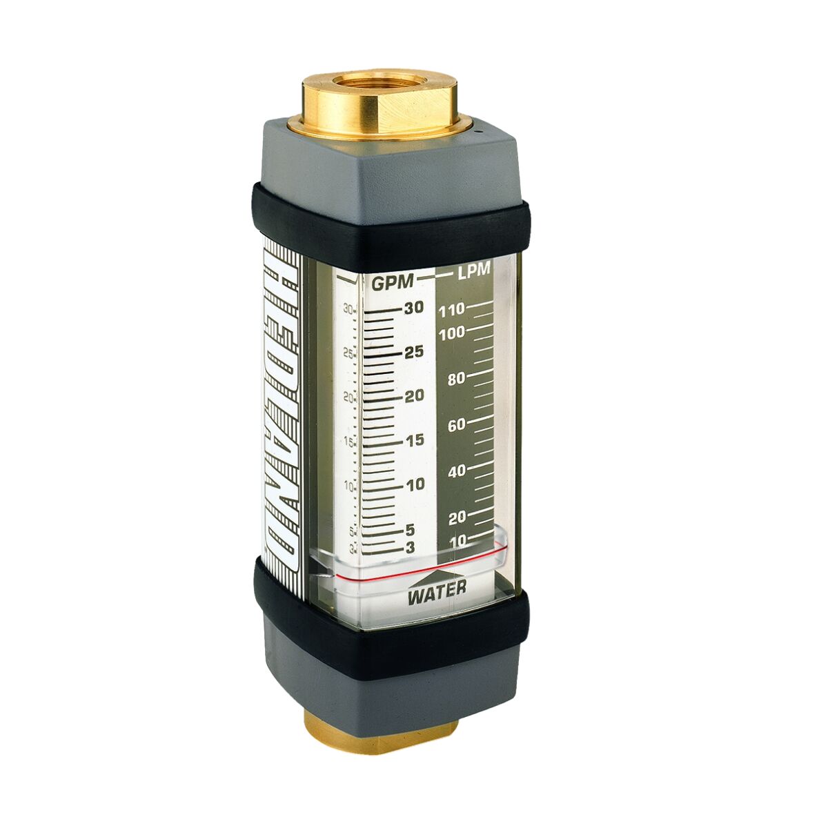 Hedland Svävkroppsmätare (rotameter) för Vatten. En precisionsbearbetad, öppningsplatta i kolvaggregatet och bildar en ringformad öppning med den konturerade mätkonen. Kolvkonstruktionen bär en cylindrisk PPS / keramisk magnet som är magnetiskt kopplad till flödes Indikatorn som rör sig exakt, i linje med kolvens rörelse. En kalibrerad fjäder motsätter sig flödet i framåtriktningen. Denna fjäder minskar viskositetskänsligheten och tillåter flödesmätaren att användas i vilken position som helst, även upp och ned.